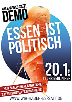 Vier weitere verschenkte Jahre in der Agrarpolitik? Das können wir uns nicht leisten. Dringender denn je brauchen wir eine bäuerliche, ökologischere Landwirtschaft und gesundes Essen für alle! Doch wer etwas verändern will, legt sich mit der mächtigen Agrarlobby an. Schluss damit: Die Politik muss endlich den Interessen der Menschen folgen, statt Konzernen zu mehr Macht zu verhelfen. Deswegen müssen wir – die kraftvolle, bunte, lautstarke Bewegung – den Konzernen die Stirn bieten und die nächste Regierung in die Pflicht nehmen.